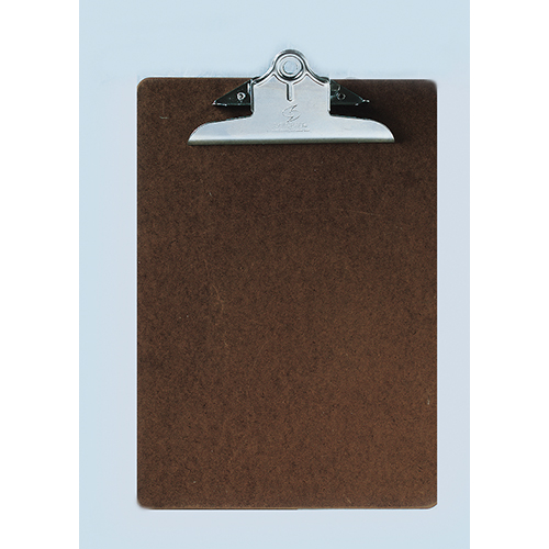 Durable brown composition board with a 5-1/2" corrosion-resistant metal clip provides dependable gripping of notes, papers and records.