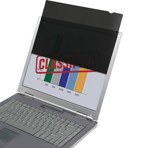 Made using quality 3M™ materials to provide world class “black out” privacy. These 16:9 Aspect Ratio privacy filters are for desktop and notebook LCD monitors and enable the user to keep classified and/or sensitive material from being viewed by others. Protects screens from scratches and fingerprints while also minimizing glare and reducing eyestrain. Easily installed and removed with no harm to screens. Filter stays in place when notebook is closed. Custom cut for specific devices, be sure to confirm the model and size before ordering. Packaging is made using 100% recycled content. Essentially the same as 3M™ Privacy Filters. 23" Widescreen, 23" D, 20-1/16" W, 11-5/16" H.